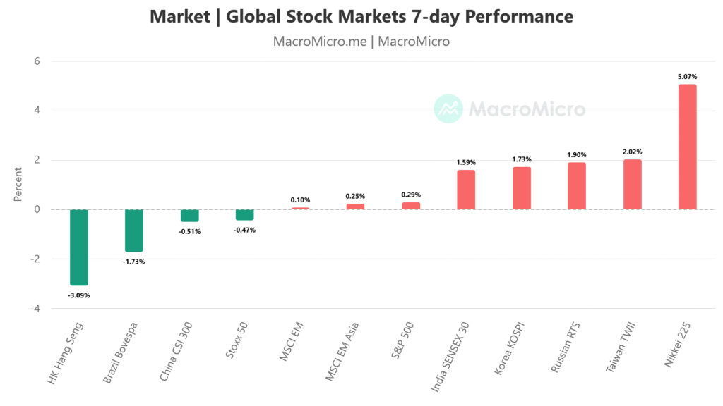 Figure 1: World – : World – Major Stock Indices 7 Day Return