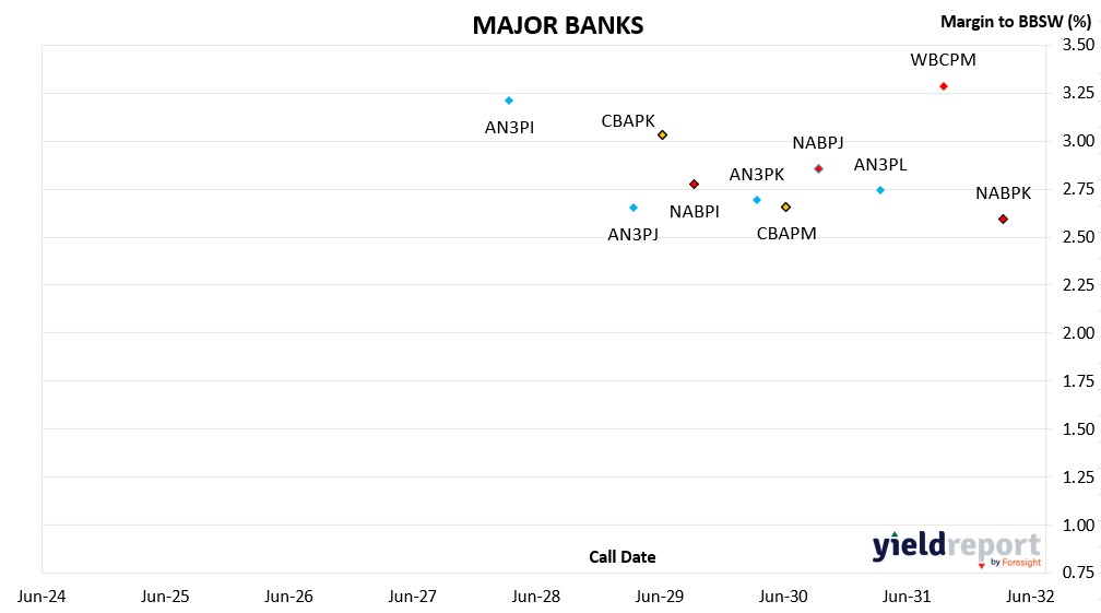 - Longer-dated hybrids (2029–2032) tend to offer lower margins, reflecting confidence in major banks.