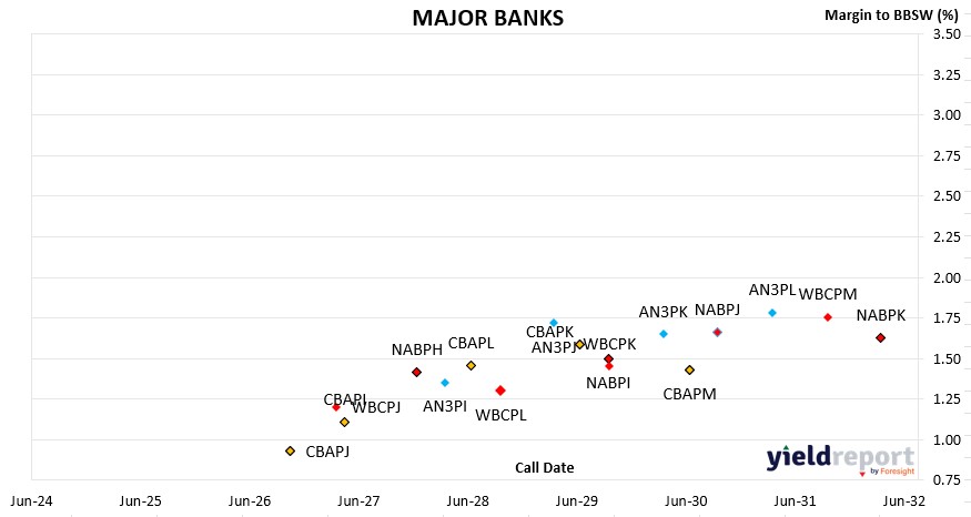 Investor demand remains strong, particularly for higher-yielding names, while major bank hybrids continue to offer stable income with moderate margins.