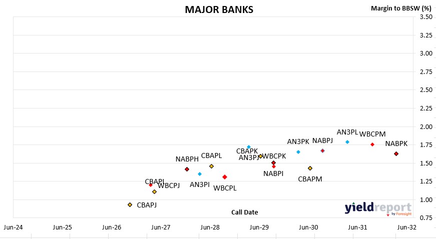 - ANZ Capital Notes (AN3PI to AN3PL) yield between 5.99% and 6.26%, with trading margins averaging 1.6% to 1.8%.