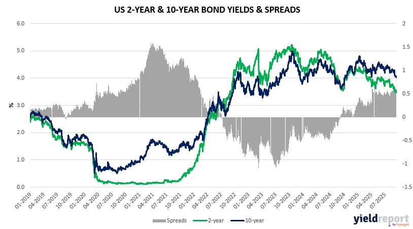 US Treasuries pulled back on September 18, 2025, erasing post-Fed gains as robust labor data eased deep-cut fears, lifting yields in a reassessment of policy pace amid record equity highs. The 2-year yield rose 2 basis points to 3.56%, the 5-year to 3.66%, the 10-year advanced 3 basis points to 4.10%, and the 30-year climbed 4 basis points to 4.72%. Shorter-end pressure mounted after jobless claims plunged to 231 thousand, the largest drop in nearly four years and under 240 thousand estimates, while Philly Fed’s 23.2 surge—versus 2.5 forecasts—affirmed hiring stability, signaling the Fed’s 25 basis-point trim to 4%-4.25% as insurance rather than panic.