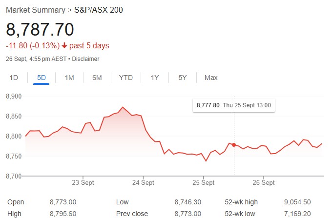 Australia’s share market posted a solid gain on September 29, 2025, marking its best day in over three weeks as rebalancing flows supported broad-based buying. The S&P/ASX 200 rose 0.86% to 8,862.8, while the All Ordinaries advanced 0.76% to 9,148.5. Nine of eleven sectors closed higher, led by Financials up 1.72% and Health Care up 1.29%, with Energy down 0.41% and Information Technology slipping 0.59%. Gold miners shone as the metal hit a record US$3,829.59, boosting the All Ords Gold Index by 3.2%, with Pantoro up 9.6%, St Barbara gaining 8.0%, and Evolution Mining rising 4.3%.
