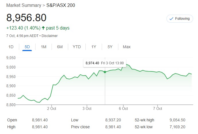 Australia’s share market closed lower on October 7, 2025, extending losses for a second session as rate-sensitive sectors faced pressure from rising bond yields and muted economic data. The S&P/ASX 200 fell 0.27% to 8,956.8, while the All Ordinaries dropped 0.28% to 9,253.6. Consumer discretionary led declines at 1.16%, followed by communication services down 1.08% and real estate off 0.46%, with REA Group sliding 2.1% and Car Group tumbling 3.8%. Materials eked out a 0.05% gain, buoyed by miners like Rio Tinto up 0.5% on a West Angelas extension.