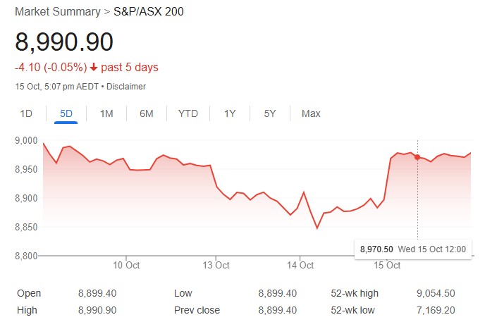 Australian shares extended gains on October 15, 2025, propelled by banks and miners as gold set records and sentiment lifted on US rate-cut hopes. The S&P/ASX 200 climbed 1.03% to 8990.9, nearing its August peak, with the All Ordinaries up 0.98%. Health care led with 2.1%, driven by Telix Pharmaceuticals’ 16.3% surge on upgraded guidance and CSL up 2.6%, while financials rose 1.2% as Westpac and NAB gained nearly 2%.