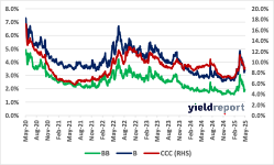 Figure 3: US High-Yield Bonds Effective Yields.        Figure 4: US High-Yield Bonds OAS Spreads