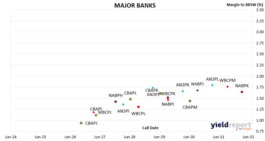 Judo Capital’s hybrid (JDOPA) stands out as the highest-yielding bank hybrid in the market, offering a running yield of 9.60% and a trading margin of 4.60%. Its elevated yield reflects both its relatively higher credit risk and investor appetite for enhanced returns.