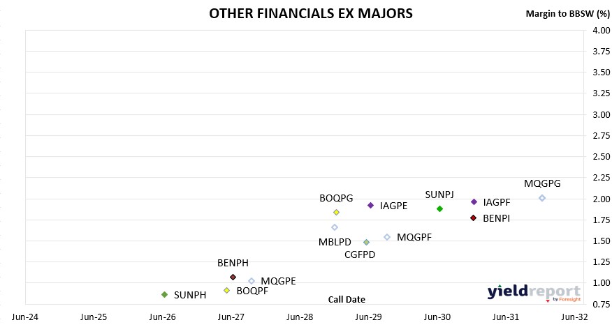 Among the major banks, Macquarie Group’s MQGPD delivers a notable 7.55% yield with a low trading margin of 0.46%, suggesting strong market confidence in its credit quality. NAB’s NABPF follows closely with a 7.47% yield, also supported by a modest margin of 0.49%.