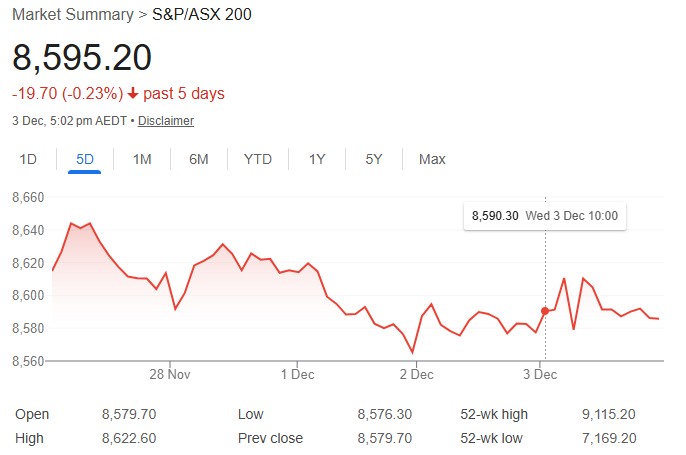 The S&P/ASX 200 closed up 0.17% at 8,579.7 on December 2, 2025, grinding out a modest gain in a lackluster session amid mixed global cues and rising bond yields. The All Ordinaries rose 0.13% to 8,877.5, with advancers edging decliners 144 to 129. Energy led gains at 1.08%, buoyed by coal sector strength, while Materials added 0.74% on commodity resilience. Coronado Global Resources climbed 7.1% and Stanmore Resources 3.9% amid broader coal firmness. Consumer Staples rose 0.46% and Real Estate 0.43%, but Information Technology plunged 1.55%, dragging the All Tech index down 1.12%. Health Care was flat, Financials unchanged, and Utilities fell 0.41%.