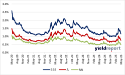Spreads generally compressed again this week, with the exception of CCC. In HY, B and BB were down 8 bps and 10 bps, respectively. CCC was up a very meaningful 45 bps. In IG, all ratings categories were effectively unchnaged. As we have noted, spreads are historically tight, and not insignificantly due to a demand / supply imabalance. But looking at the fundamentals, generally speaking at this point companies are in good shape, and if we look at US investment grade companies, as an example, we are not seeing any cracks in the facade as it relates to balance sheets. We are not seeing defaults pick up.